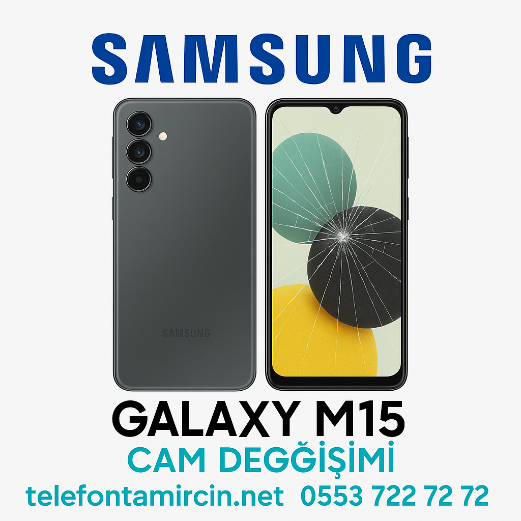 “Samsung M15 şarj olmuyor”, “Galaxy M15 batarya sorunu”, “Samsung M15 ekran çatlağı”, “Galaxy M15 cam tamiri”, “Telefontamircin orijinal parça garantisi”.